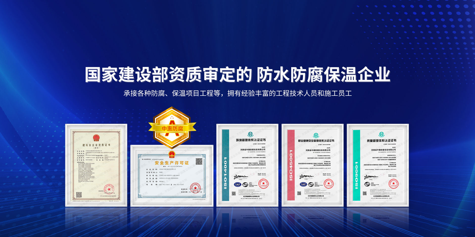 公司經營范圍:防水防腐保溫工程;消防設施工程;建筑裝修裝飾工程;建筑機電安裝工程;電力工程;建筑工程;石油化工工程;工業清洗工程;油罐清洗工程;鋼結構工程;環保工程;模板腳手架工程;電纜防火封堵、防污閃噴涂、外墻外保溫工程;各類施工勞務作業;設備維修、船舶鉚焊、涂裝;電力工程材料、建材、防水材料、防火材料、防腐保溫材料銷售,并相繼通過了GB/T19001-2008idtISO9001:2008GB/T50430-2007質量管理體系認證證書。GB/T24001-2004idtISO14001:2004環境管理體系認證證書。GB/T28001-2011idtOHSAS18001:2007職業健康安全管理體系認證證書。公司是中國防腐蝕于防護協會、中國施工企業管理協會、電力協會和中國鋼結構防水協會會員單位。 公司的經營業務涵蓋了石油、化工、電力、冶金、煤炭、船舶、國防、燃氣、水利、環保、交通運輸、航空及國防軍工和輕紡市政等行業的防腐保溫絕熱設備。鋼結構安裝、防火、防水、金屬噴鍍、聚脲噴繪、陰極保護、防滲透堵漏、玻璃鋼及各種磚版材料襯里、橡膠襯里、煙氣硫和耐酸溶劑腐蝕等工程施工。公司連續十年榮獲“省市先進施工企業”“安全生產先進單位”“重合同,守信用企業”和“AA***資質企業”的稱號。2000年被命名為市級文明單位,2002年被國家工商行政管理局命名為“重合同,守信用的企業”、被中國工業防腐蝕技術協會命名為“防腐蝕企業,能源節約及環境保護領域有豐富的經驗和***的業績。工程一次交驗合格率100%。其中攀枝花鋼鐵公司煉鐵廠四號高爐及熱風爐防腐工程、上海寶鋼公司煤氣柜防腐工程、撫順石油一廠裝置防腐項目、齊魯石化公司稀烴廠高塔防腐工程、吉林化學工業公司煉油廠油罐防腐工程、天津石化熱電廠六號爐頂棚聯絡管保溫工程、大慶油田(太倉)力神泵業工程、中國化學工程第十一建設工程、中原油田勘探局工程、中國石化銷售有限公司華北分部、魯皖輸油管道工程、貴州開磷息烽合成氨工程、陜西黃陵煤化工程、中國石油天然氣西部管道塔里木輸油工程、邯鋼集團邯寶鋼鐵公司煉鐵工程、德州供電工程、吉寶(南通)船廠工程,偃師華潤熱力工程、鄭州熱力總公司。 河南省中惠防腐安裝有限公司愿以豐富的施工經驗,***的技術,***的設備,***的管理,***的服務,竭誠為國內外廣大的用戶提供***滿意、******的工程作品。 我公司愿與國內外同仁一道,團結協作,共同推進防腐蝕行業發展! 公司地址:河南省長垣縣建設路北段360號 固定電話:0373-8866488 郵編:453400 網址:http://www_zhff_com_cn.0816fc.com
